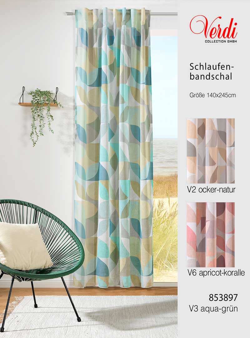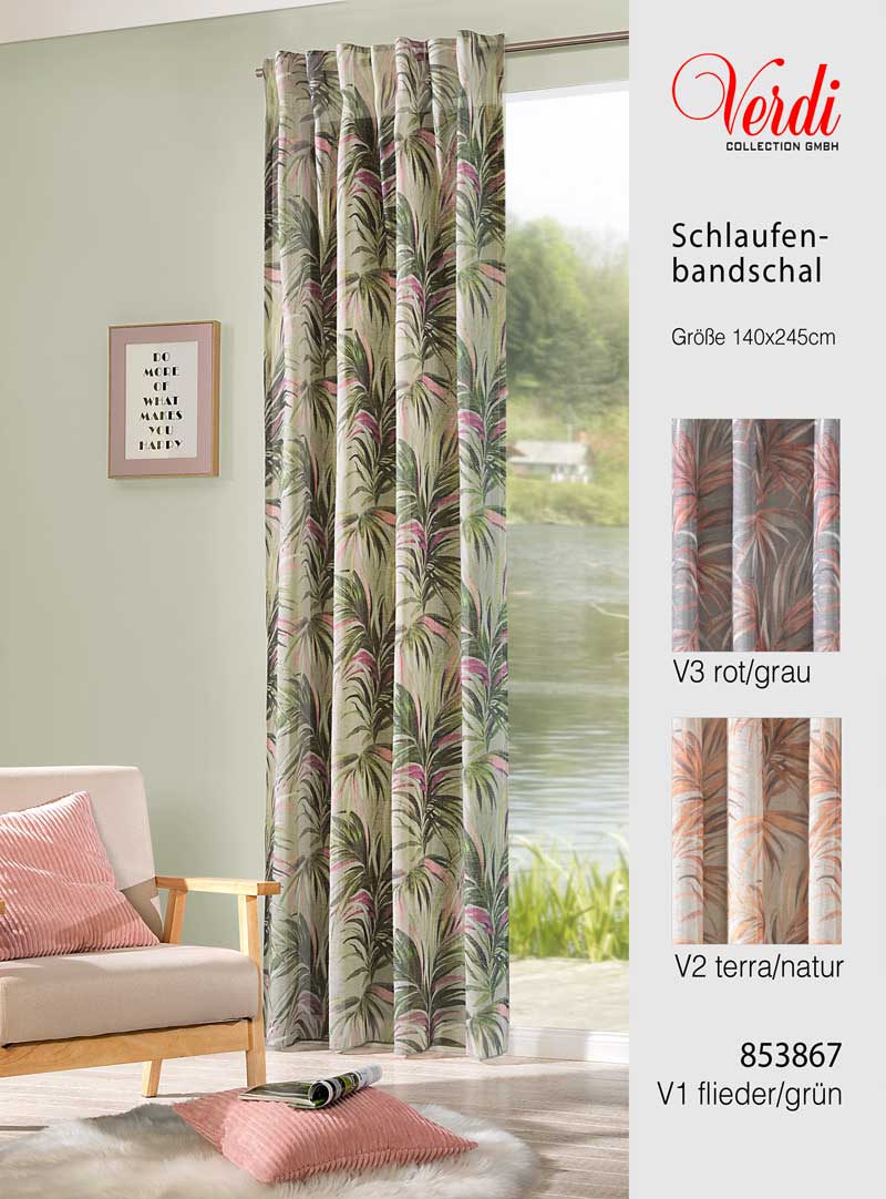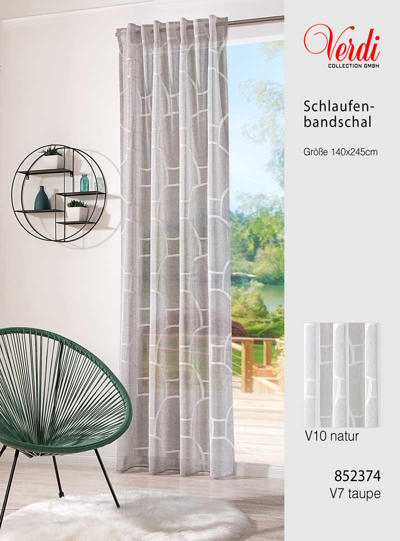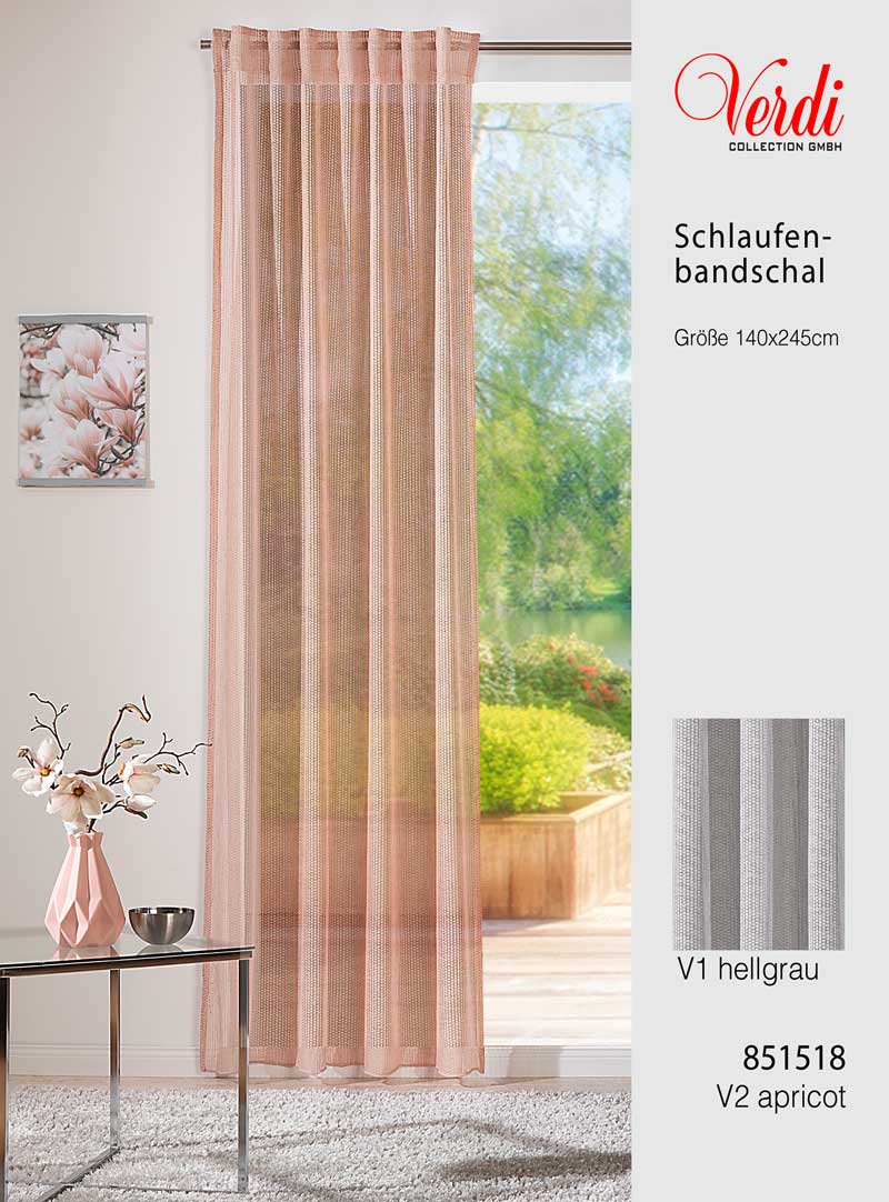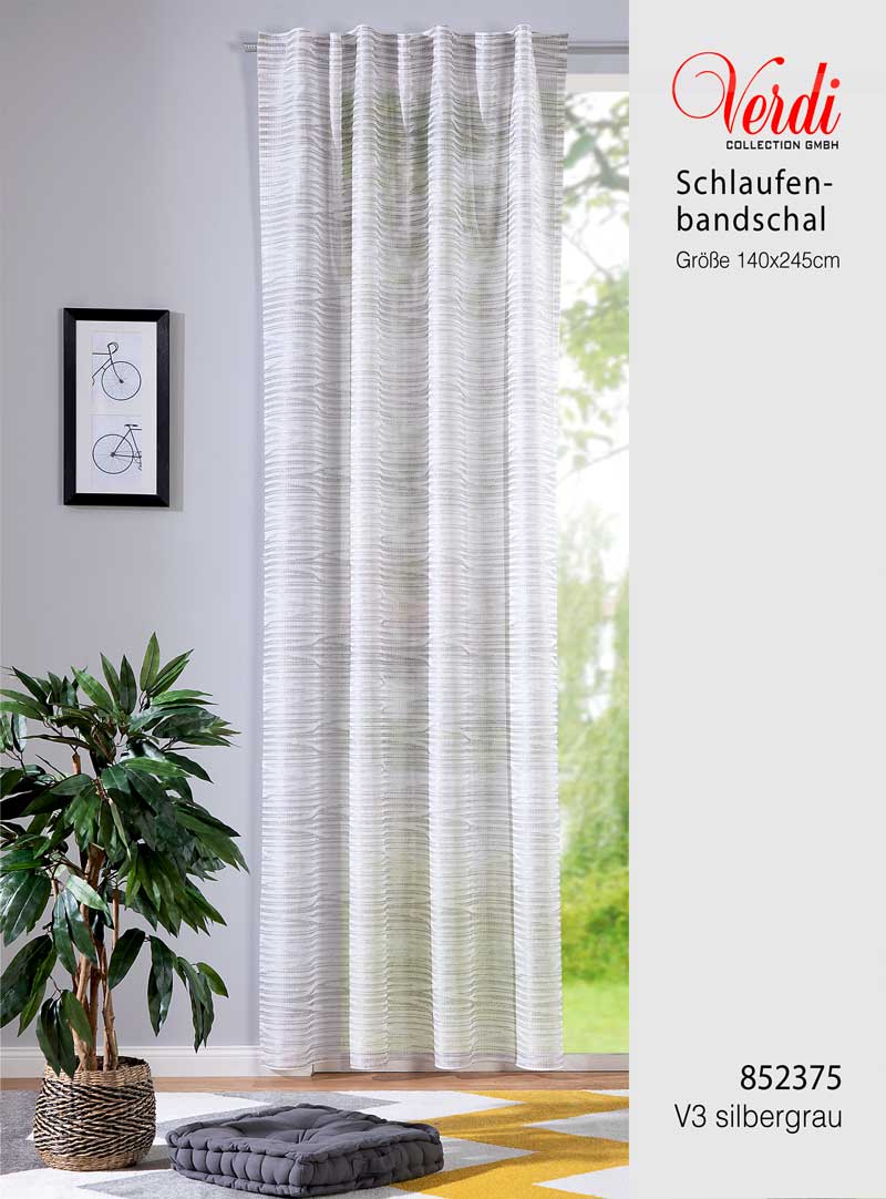 Das Verdi Konfektionsprogramm wurde in den letzten Jahren immens im Bereich Schlaufenbandschals, Ösenschals, Schiebevorhänge und Rollos erweitert.Ob transparent oder blickdicht, Sie finden die passenden Produkte in unserer Kollektion. Die Seitenabschlüsse der Schiebevorhänge werden mit Ultraschalltechnik geschnitten und dadurch sauber verschlossen.